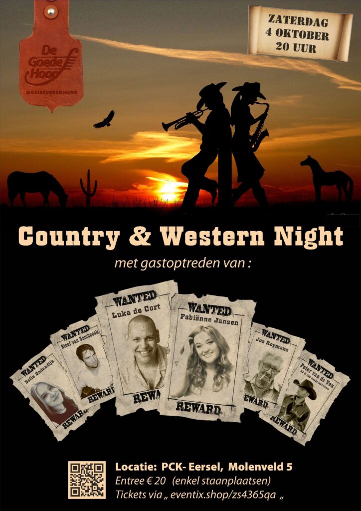 Op 4 oktober 2025 organiseert muziekvereniging De Goede Hoop samen met enkele getalenteerde artiesten uit de Kempen een onvergetelijk Country & Western concert in de sfeervolle manege van PCK Eersel. Fabiënne Jansen en Luke de Cort nemen de zang voor hun rekening. Daarnaast wordt het harmonieorkest van De Goede Hoop versterkt door gitarist Steef van Sambeeck, basgitarist Jos Roymans en pianiste Sofia Endendijk.