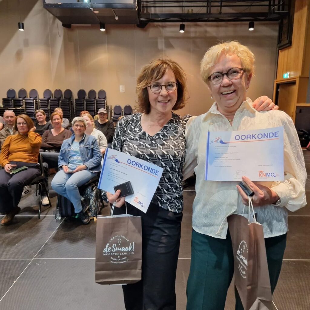 🎷2️⃣5️⃣🎷 Tijdens onze algemene ledenvergadering vierden we het 25-jarig verenigingsjubileum van saxofonisten Rian Heijmans en Toos Cuypers. De zussen ontvingen een speld en oorkonde van muziekbond KNMO en een smakelijk presentje van De Goede Hoop. Nogmaals gefeliciteerd en nog vele muzikale jaren toegewenst!